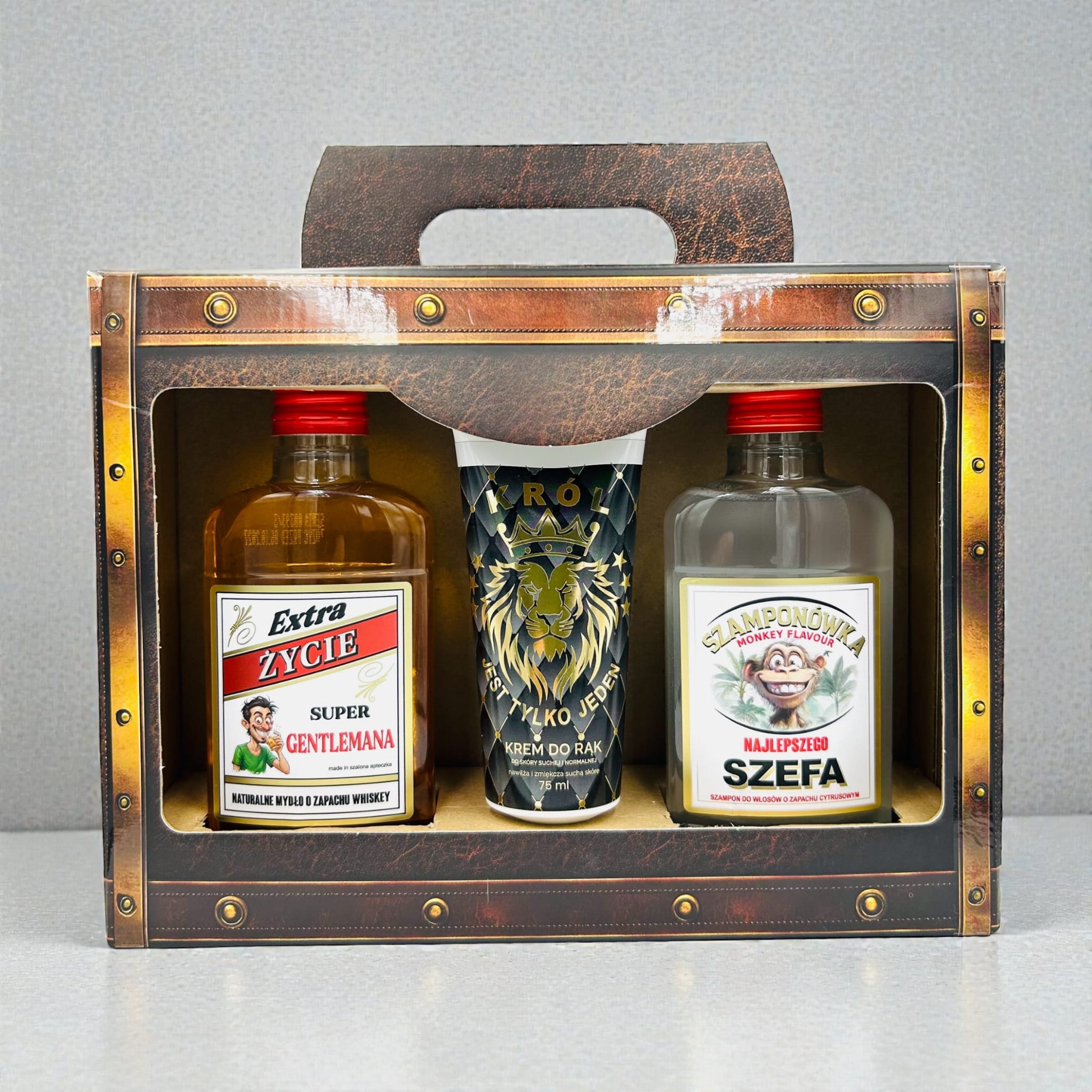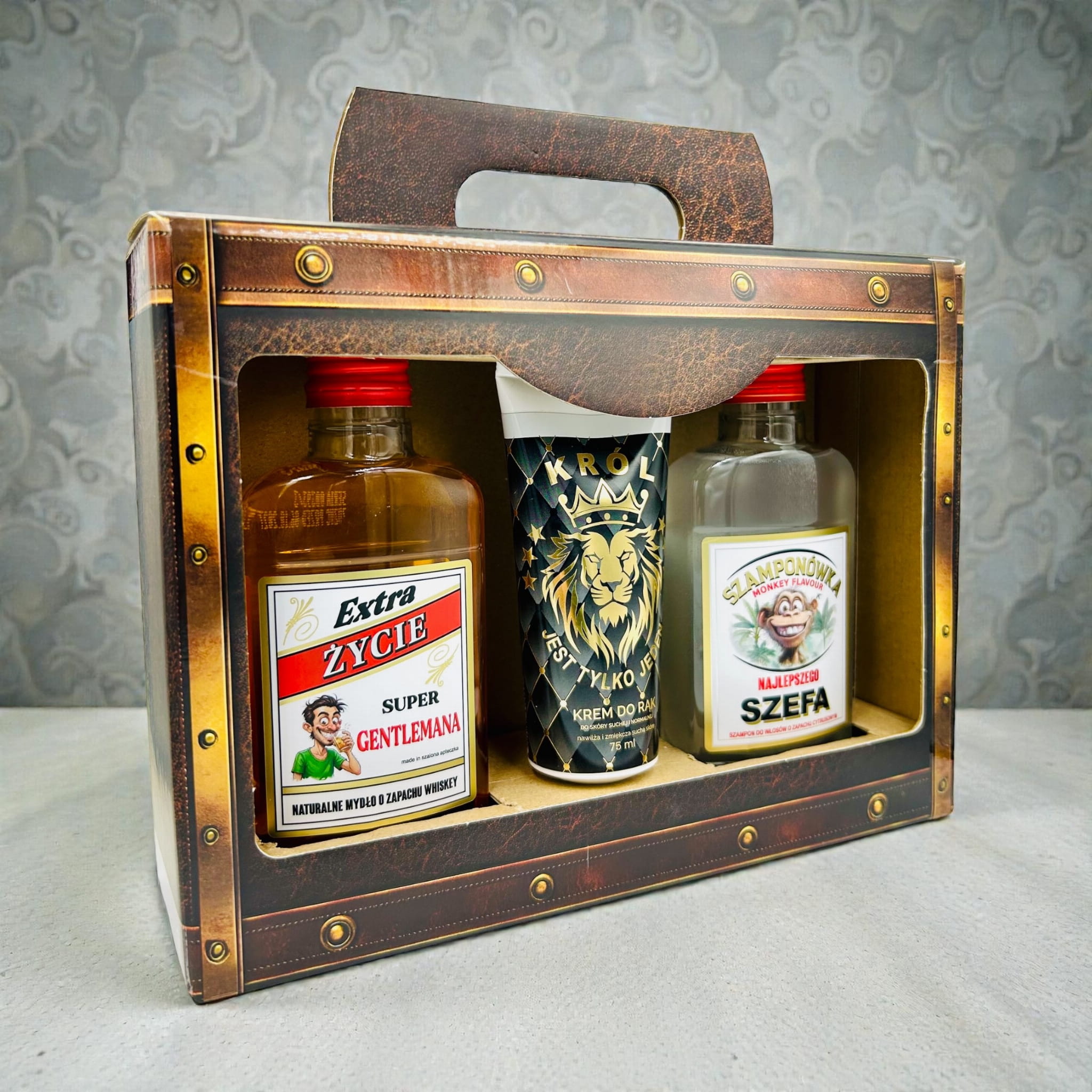 W środku walizki kryją się trzy miniaturowe perełki: mydło w płynie, szampon oraz krem do rąk. Zapakowane są w ikoniczne, buteleczki typu „małpka", znane z półek sklepowych , oraz praktyczną tubkę. To hołd dla klasyki w nowej, praktycznej i luksusowej odsłonie. Ten wzór to absolutna nowość i prawdziwy rarytas niedostępny dotąd na rynku.
