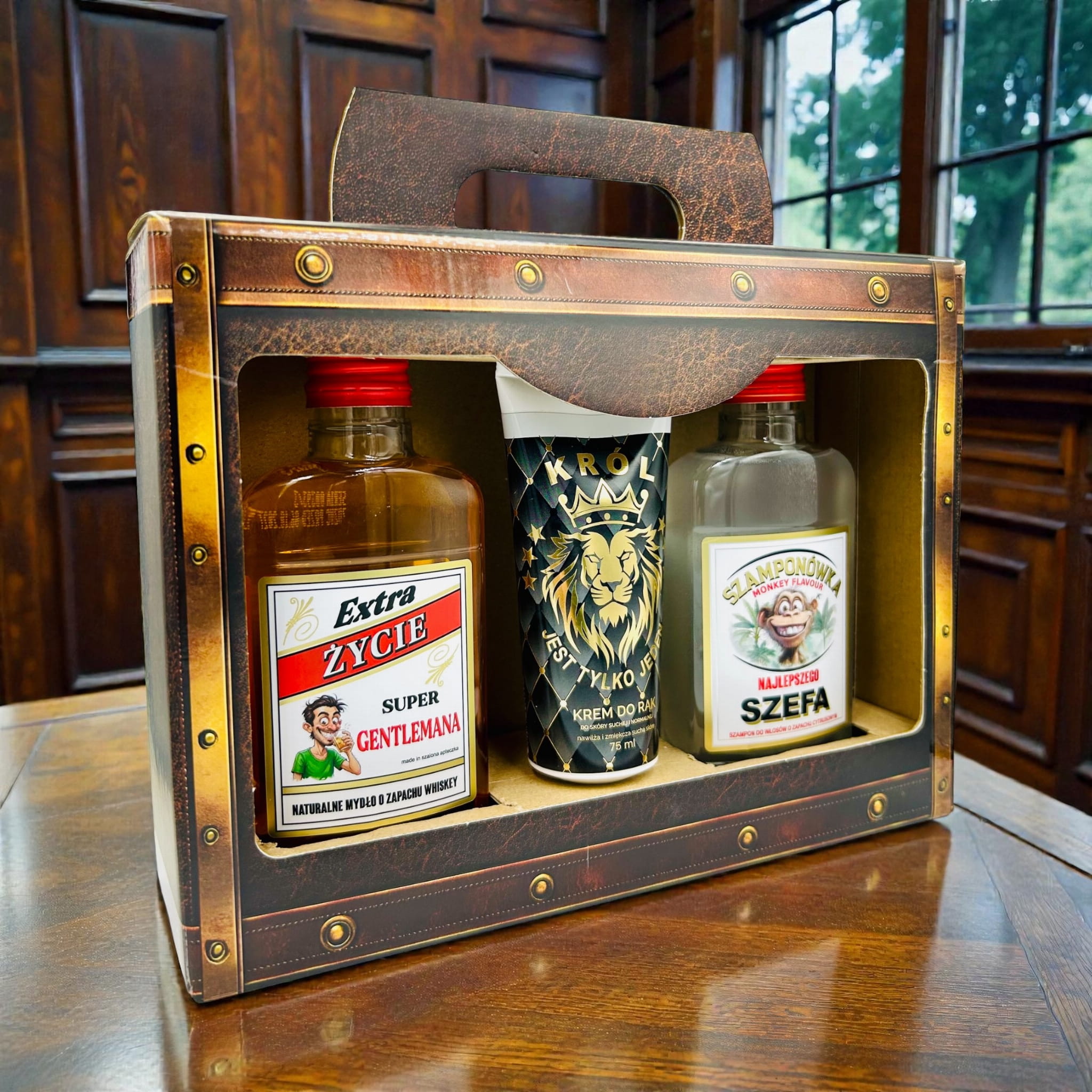 4. Eleganckie pudełko-walizka – nadające całości ekskluzywnego charakteru.
